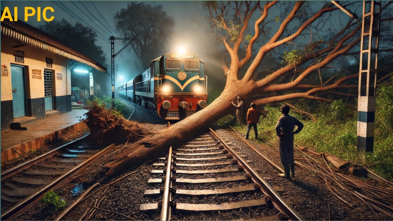 ರೈಲ್ವೆ ಹಳಿಗೆ ಉರುಳಿ ಬಿದ್ದ ಬೃಹತ್ ಮರ: ರೈಲು ಚಾಲಕನ ಸಮಯ ಪ್ರಜ್ಞೆಯಿಂದ ತಪ್ಪಿದ ಭಾರಿ ಅನಾಹುತ