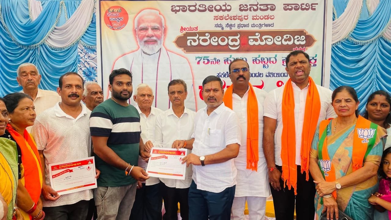 ಗುರುವಾರ ಪಟ್ಟಣದ ಹಳೇಬಸ್ ನಿಲ್ದಾಣದಲ್ಲಿ ಪ್ರಧಾನ ಮಂತ್ರಿ ನರೇಂದ್ರ ಮೋದಿ ಅವರ 75 ನೇ ಹುಟ್ಟುಹಬ್ಬದ ಅಂಗವಾಗಿ ತಾಲ್ಲೂಕು ಬಿಜೆಪಿ ಹಾಗೂ ಹಾಸನದ ಹಿಮ್ಸ್ ಆಸ್ಪತ್ರೆ ವತಿಯಿಂದ ಹಮ್ಮಿಕೊಂಡಿದ್ದ ರಕ್ತದಾನ ಶಿಬಿರವನ್ನು ಉದ್ಘಾಟಿಸಿ ಮಾತನಾಡಿ, ಸೆಪ್ಟೆಂಬರ್ 17 ರಿಂದ ಅಕ್ಟೋಬರ್ 2 ರವರೆಗೆ ಪಕ್ಷದ ಸೂಚನೆಯಂತೆ ರಕ್ತದಾನ ಶಿಭಿರ,ಸ್ವಚ್ಚತಾ ಕಾರ್ಯ, ಪರಿಸರ ಸಂರಕ್ಷಣೆ ಹಾಗೂ ಮ್ಯಾರಥಾನ್ ಓಟ, ಆರೋಗ್ಯ ಶಿಬಿರದಂತಹ ಸಮಾಜ ಮುಖಿ ಕಾರ್ಯಕ್ರಮಗಳನ್ನು ಹಮ್ಮಿಕೊಳ್ಳಲಾಗಿದೆ.