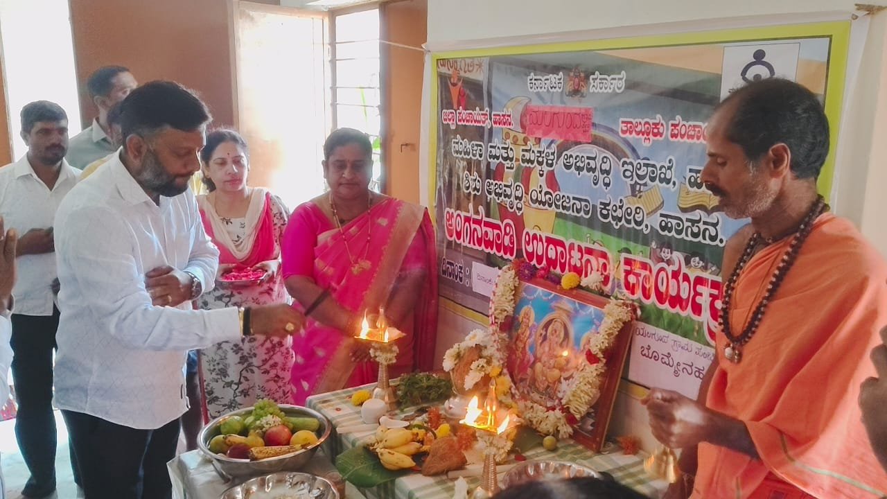ಹಾಸನ: ಸಾಲಗಾಮೆ ಹೋಬಳಿ ಬೊಮ್ಮೇನಹಳ್ಳಿ ಗ್ರಾಮದಲ್ಲಿ ಇಂದು 30 ಲಕ್ಷ ವೆಚ್ಚದ ಸಮುದಾಯ ಭವನ, ₹25 ಲಕ್ಷ ವೆಚ್ಚದ ಅಂಗನವಾಡಿ ಕಟ್ಟಡವನ್ನು ಶಾಸಕ ಸ್ವರೂಪ್ ಪ್ರಕಾಶ್ ಉದ್ಘಾಟಿಸಿದರು.