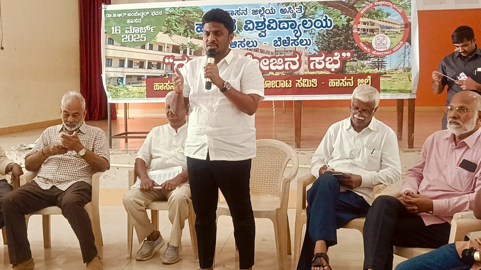 ನಗರದ ಡಾ. ಬಿ.ಆರ್. ಅಂಬೇಡ್ಕರ್ ಭವನದಲ್ಲಿ ಹಾಸನ ವಿವಿ ಉಳಿಸಲು ನಡೆದ ದುಂಡು ಮೇಜಿನ ಸಭೆಯಲ್ಲಿ ಮಾತನಾಡಿದ ಸಂಸದರು, ವಿಶ್ವವಿದ್ಯಾಲಯದ ಮುಂದಿನ ಗತಿ ಕುರಿತು ಸುದೀರ್ಘ ಚರ್ಚೆ ನಡೆಯಿತು. “ಜಿಲ್ಲೆಯ ಅಭಿವೃದ್ಧಿ ವಿಚಾರ ಬಂದಾಗ ಪಕ್ಷಭೇದ ಮರೆತು ಒಗ್ಗೂಡಿ ಕಾರ್ಯನಿರ್ವಹಿಸಬೇಕು. ಜನರ ಪರ ನಿಂತು, ವಿವಿಯ ಉಳಿವಿಗೆ ಸರ್ಕಾರದ ಗಮನ ಸೆಳೆಯುತ್ತೇವೆ” ಎಂದು ಅವರು ಹೇಳಿದರು.