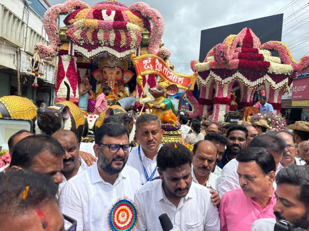 ಹಾಸನ:ನಗರದ ಶ್ರೀ ಗಣಪತಿ ಸೇವಾ ಸಂಸ್ಥೆ ವತಿಯಿಂದ ನಗರ ಬಸ್ ನಿಲ್ದಾಣ ಸಮೀಪ ಪ್ರತಿಷ್ಠಾಪಿಸಿದ್ದ75ನೇ ವರ್ಷದ ಗಣೇಶ ಮೂರ್ತಿ ವಿಸರ್ಜನಾ ಮೆರವಣಿಗೆ ಉದ್ಘಾಟನಾ ಸಮಾರಂಭದಲ್ಲಿ ಸಂಸದ ಶ್ರೇಯಸ್ ಪಟೇಲ್ ಭಾಗಿಯಾಗಿದ್ದರು.