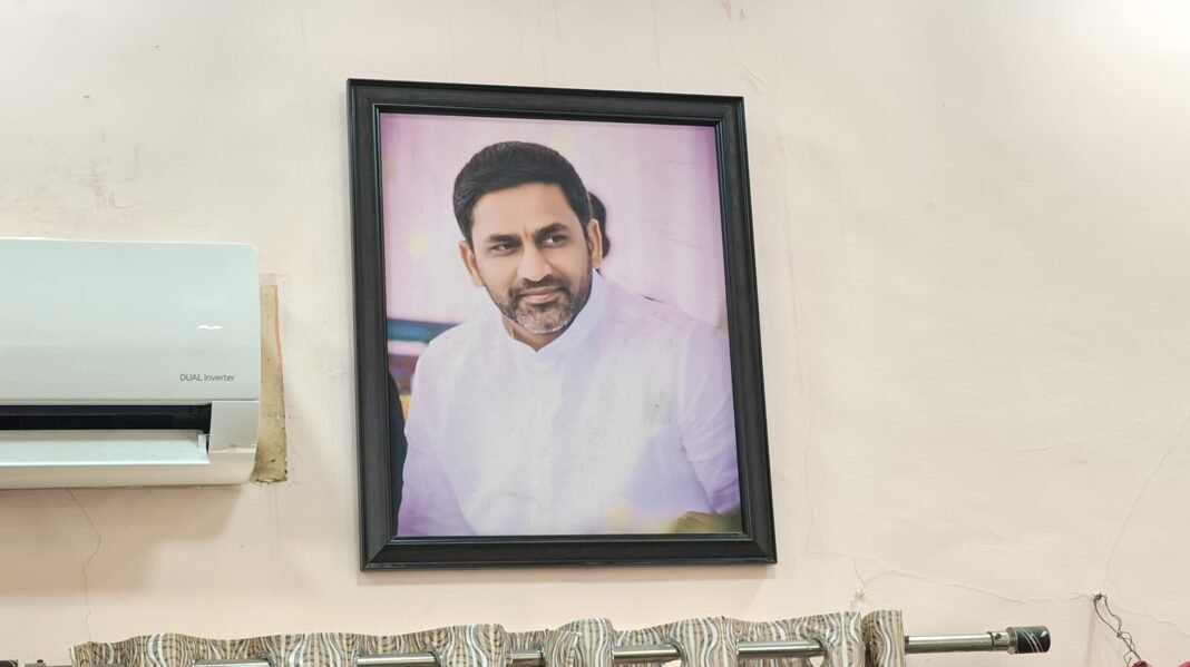 ಅಧ್ಯಕ್ಷರ ಕುರ್ಚಿ ಹಿಂಭಾಗದ ಗೋಡೆಯಲ್ಲಿ ಸ್ಚರೂಪ್, ಪ್ರೀತಂ ಅವರ ಫೋಟೋಗಳು