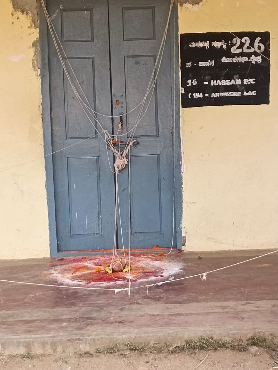 ಶಾಲಾ ಕೊಠಡಿಯ ಬಾಗಿಲಿಗೆ ಹಸಿ ನೂಲು ಕಟ್ಟಲಾಗಿದ್ದು, ಅರಿಶಿನ, ಕುಂಕುಮ, ಬಾಳೆಹಣ್ಣು, ತೆಂಗಿನಕಾಯಿ ಮುಂತಾದ ಪೂಜಾ ಸಾಮಾಗ್ರಿಗಳನ್ನು ಇಡಲಾಗಿದೆ. ಬುಧವಾರ ರಾತ್ರಿ ಶಾಲೆಯ ಆವರಣದಲ್ಲಿ ತೆಂಗಿನಗರಿ ಚಪ್ಪರ ಹಾಕಿ ಗೊಂಬೆ ಮುರಿದು, ವಾಮಾಚಾರ ನಡೆಸಿರುವುದಾಗಿ ಸ್ಥಳೀಯರು ತಿಳಿಸಿದ್ದಾರೆ.