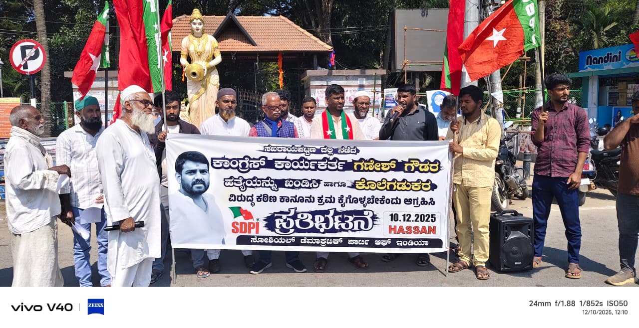 ಚಿಕ್ಕಮಗಳೂರು :ಜಿಲ್ಲೆಯ ಸಖರಾಯಪಟ್ಟಣದಲ್ಲಿ ಕಾಂಗ್ರೆಸ್ ಮುಖಂಡ ಗಣೇಶ್ಗೌಡ ಹತ್ಯೆ ಖಂಡಿಸಿ ತಪ್ಪಿತಸ್ಥರ ಮೇಲೆ ಕಠಿಣ ಕ್ರಮಕ್ಕೆ ಆಗ್ರಹಿಸಿ ಸೋಶಿಯಲ್ ಡೆಮಾಕ್ರಟಿಕ್ ಪಾರ್ಟಿ ಆಫ್ ಇಂಡಿಯಾ ಘಟಕದಿಂದ ನಗರದ ಹೇಮಾವತಿ ಪ್ರತಿಮೆ ಬಳಿ ಇದು ಪ್ರತಿಭಟನೆ ನಡೆಸಲಾಯಿತು.