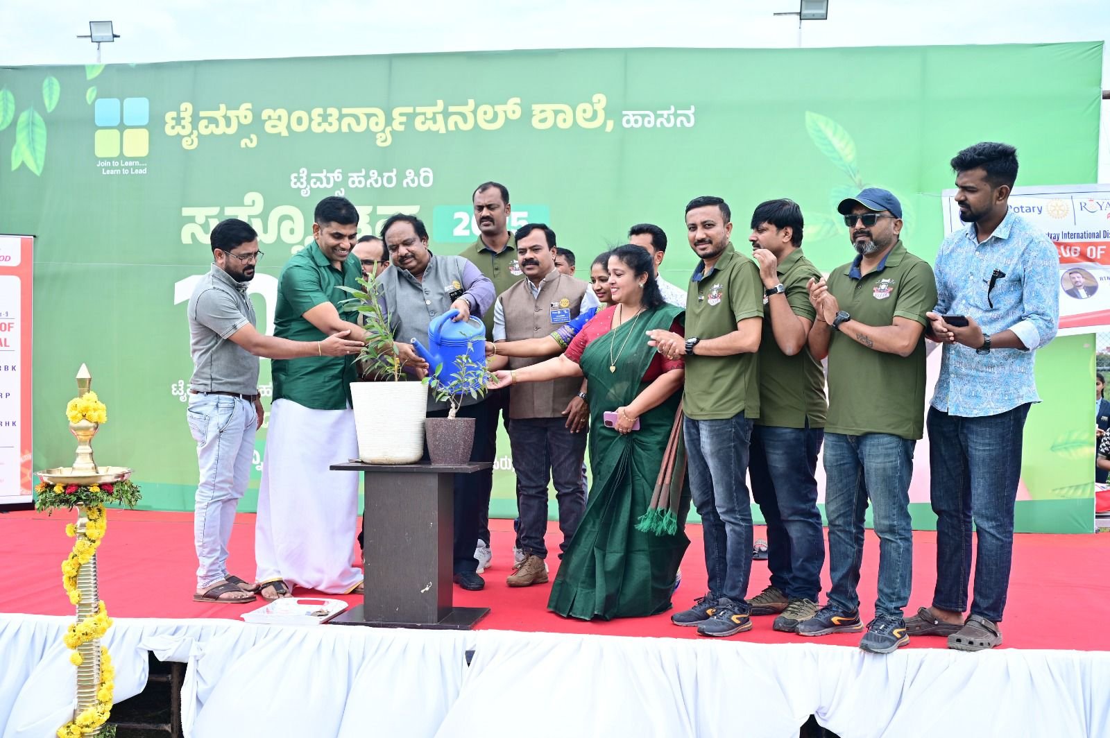 ನಗರದ ವಿಜಯನಗರ ಟೈಮ್ಸ್ ಅಂತಾರಾಷ್ಟ್ರೀಯ ಶಾಲೆಯಲ್ಲಿ ರೋಟರಿ ಕ್ಲಬ್ ಆಫ್ ಹಾಸನ ರಾಯಲ್, ಬಟ್ಟೆ ಅಂಗಡಿ, ಅಕ್ಷರ ಅಕಾಡೆಮಿ, ಅಕ್ಷರ ಬುಕ್ ಹೌಸ್ ವತಿಯಿಂದ ಹಮಿಕೊಂಡಿದ್ದ 2025-26ನೇ ಸಾಲಿನ ಹತ್ತು ಸಾವಿರ ಸಸಿ ವಿತರಣೆ ಟೈಮ್ಸ್ ಹಸಿರ ಸಿರಿ ಸಸ್ಯೋತ್ಸವ ಉದ್ಘಾಟಿಸಿ ಮಾತನಾಡಿದರು.