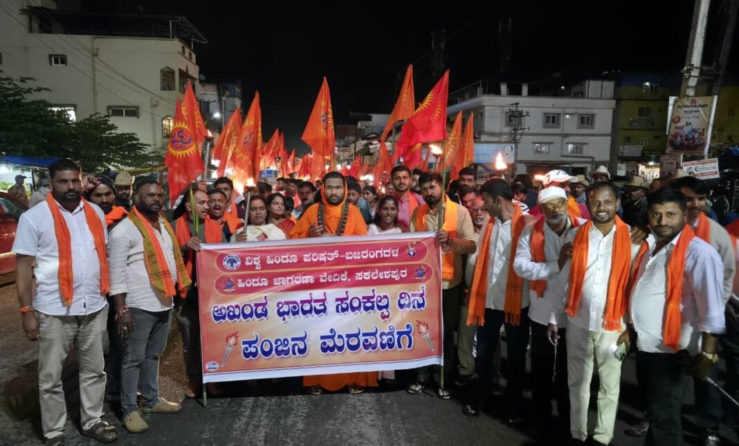 ಸಕಲೇಶಪುರ ಪಟ್ಟಣದ ಒಕ್ಕಲಿಗ ಸಮುದಾಯ ಭವನದ ಆವರಣದಲ್ಲಿ ವಿಎಚ್ಪಿ ,ಭಜರಂಗದಳ ಹಾಗೂ ಹಿಂದೂ ಜಾಗರಣ ವೇದಿಕೆ ವತಿಯಿಂದ ನಡೆದ ಅಖಂಡ ಭಾರತ ಸಂಕಲ್ಪ ದಿನಾಚರಣೆ ಕಾರ್ಯಕ್ರಮವನ್ನು ದೀಪ ಬೆಳಗುವ ಮುಖಾಂತರ ಉದ್ಘಾಟಿಸಿ ಮಾತನಾಡಿ ಭಾರತ ಭರತ ಖಂಡವಾಗಿ ಉಳಿದಿದ್ಯ ಎಂಬ ಪ್ರಶ್ನೆ ಯೋಚನೆ ಮಾಡಿದರೆ ಗೊತ್ತಾಗುತ್ತದೆ ಭಾರತ ಹರಿದು ಹಂಚಿ ಹೋಗಿದೆ ಅಂತ, ನಮ್ಮೆಲ್ಲರ ಆತ್ಮ ವಿಶ್ವಾಸ ಕೊರತೆ ಈ ರೀತಿ ಆಗಲು ಕಾರಣವಾಗಿದೆ.