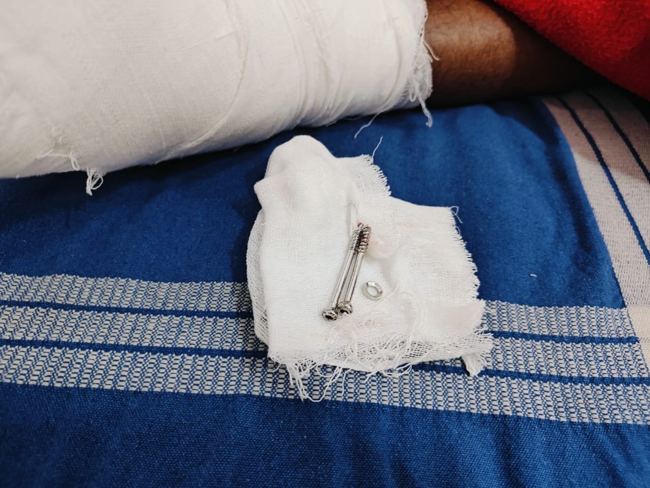 shocking incident has taken place at the government-run HIMS Hospital in Hassan district due to doctor negligence. The patient sustained injuries to both legs due to the mistake of the doctor who performed the surgery on his right leg during the surgery to remove the rod implanted in his left leg.