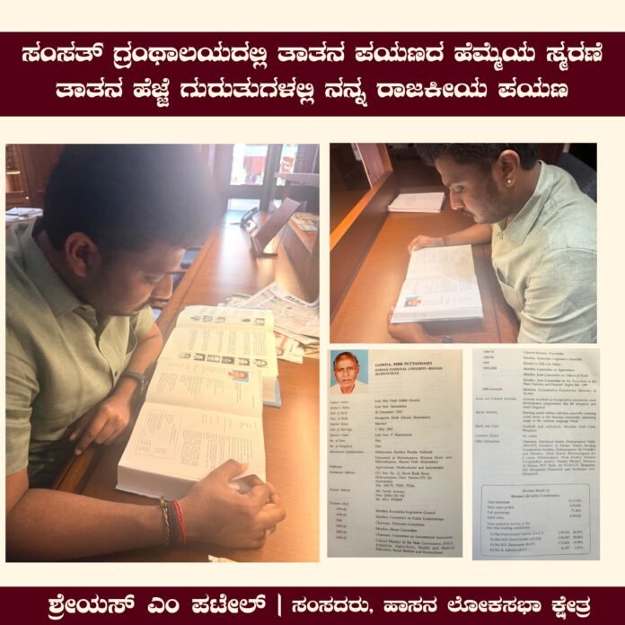 ಈ ವೇಳೆ 13ನೇ ಲೋಕಸಭಾ ಚುನಾವಣೆಯಲ್ಲಿ ಹಾಸನ ಲೋಕಸಭಾ ಕ್ಷೇತ್ರದಿಂದ ಆಯ್ಕೆಯಾಗಿದ್ದ ತಮ್ಮ ತಾತ, ದಿವಂಗತ ಪುಟ್ಟಸ್ವಾಮಿಗೌಡ ಅವರ ಕುರಿತು ಗ್ರಂಥಾಲಯದಲ್ಲಿ ಸಂಗ್ರಹವಾಗಿರುವ ಮಾಹಿತಿಯನ್ನು ನೋಡಿದದ್ದು ಹೆಮ್ಮೆಯ ಕ್ಷಣವಾಗಿತ್ತು ಎಂದು ಸಂಸದರು ಸಾಮಾಜಿಕ ಜಾಲತಾಣದ ಪೋಸ್ಟ್ ನಲ್ಲಿ ತಿಳಿಸಿದ್ದಾರೆ.