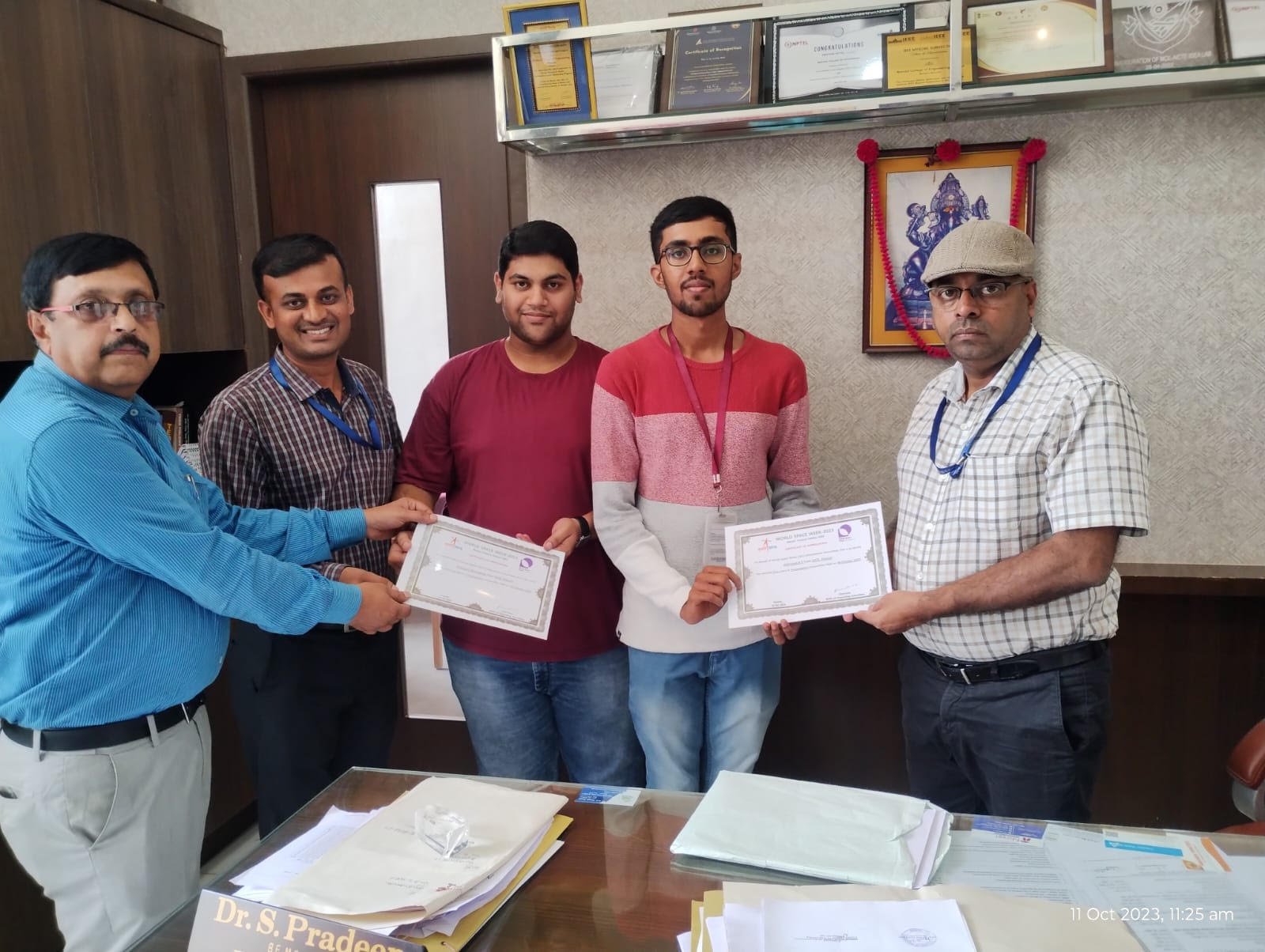 ಹಾಸನ: ನಗರದ ಮಲೆನಾಡು ಇಂಜಿನೀಯರಿಂಗ್ ಕಾಲೇಜಿನ ಎಲೆಕ್ಟ್ರಾನಿಕ್ಸ್ ವಿಭಾಗದ ವಿದ್ಯಾರ್ಥಿಗಳಾದ ಶಶಾಂಕ್ ಭಾರಧ್ವಾಜ್ ಹಾಗೂ ಅಭಿಷೇಕ್ . ಕೆ. ಎಸ್. ರವರು ಹಾಸನದ M C F ನಲ್ಲಿ ನಡೆದ ವಿಶ್ವ ಬಾಹ್ಯಾಕಾಶ ಸಪ್ತಾಹ 2023 ರ ಸ್ಪರ್ಧೆಯಲ್ಲಿ ಮೊದಲನೆಯ ಬಹುಮಾನಗಳಿಸಿದ್ದಾರೆ.