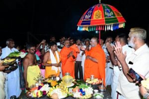 ಸಂಜೆ ಶ್ರೀಕ್ಷೇತ್ರಕ್ಕೆ ಆಗಮಿಸಿದ ಶ್ರೀ ಶಂಭುನಾಥಸ್ವಾಮೀಜಿ ಅವರನ್ನು ಗ್ರಾಮಸ್ಥರು ಪಾದಪೂಜೆ ನೆರವೇರಿಸಿ ಪೂರ್ವಕುಂಭದೊಂದಿಗೆ ಸ್ವಾಗತಿಸಿದರು. ಮೊದಲಿಗೆ ಶ್ರೀಗಳು ವಿಘ್ನೇಶ್ವರ ಹಾಗೂ ಗಂಗಾಪೂಜೆ ನೆರವೇರಿಸಿದರು.