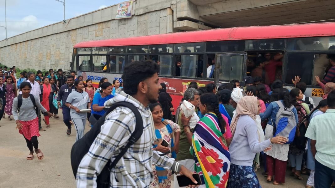 ಸದ್ಯ 9.30ರ ನಂತರ ಆಗೊಂದು–ಈಗೊಂದು ಬಸ್ ಗಳು ಬಂದವು, ಅವುಗಳು ಅಲ್ಲಿಂದಲೇ ಪ್ರಯಾಣಿಕರಿಂದ ತುಂಬಿದ್ದವು. ನೂಕುನುಗ್ಗಲಿನಲ್ಲಿ ಕೆಲವರು ಬಸ್ ಹತ್ತಿದರೇ, ವೃದ್ಧರು, ರೋಗಿಗಳು ಬಸ್ ಹತ್ತಲಾಗದೆ ಇಲ್ಲೆ ಉಳಿಯಬೇಕಾಯಿತು.