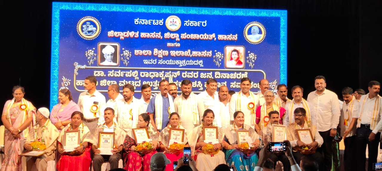 ಹಾಸನ: teachers-of-private-schools-were-felicitated-at-the-teachers-day-celebrations-held-at-the-hassanamba-kalakshetra-in-the-city-on-thursday-by-the-hassan-district-administration-zilla-panchayat-schoo
