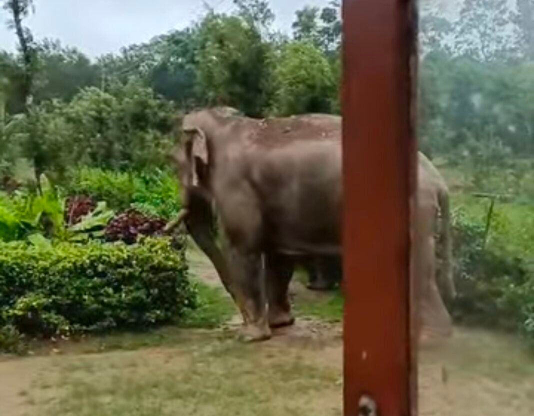ಸಕಲೇಶಪುರ ತಾಲ್ಲೂಕಿನ ಉದೇವಾರ ಗ್ರಾಮದಲ್ಲಿ ಬಿರುಗಾಳಿ ಸಹಿತ ಮಳೆಯ ನಡುವೆಯೂ ದೈತ್ಯಾಕಾರದ ಕಾಡಾನೆ ಭೀಮ ಒಂದು ಆನೆ ಮರಿಯೊಂದಿಗೆ ಆಹಾರ ಅರಸಿ ಕೆ.ಎಚ್. ಬಸವರಾಜು ಎಂಬುವವರ ಮನೆಯ ಬಾಗಿಲಿಗೆ ಬಂದ ಘಟನೆ ಭಾನುವಾರ ಬೆಳಗ್ಗೆ ನಡೆದಿದೆ.