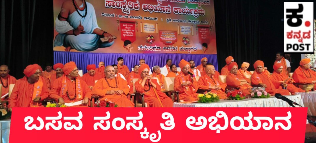 ನಗರದ ಹಾಸನಾಂಬ ಕಲಾಕ್ಷೇತ್ರ ಭಾನುವಾರ ನಡೆದ ವಿಶ್ವಗುರು ಬಸವಣ್ಣ ಅವರನ್ನು ಸಾಂಸ್ಕೃತಿಕ ನಾಯಕನೆಂದು ರಾಜ್ಯ ಸರ್ಕಾರ ಘೋಷಿಸಿ ಒಂದು ವರ್ಷ ಪೂರೈಸಿದ ಹಿನ್ನೆಲೆ ಬಸವ ಸಂಸ್ಕೃತಿ ಅಭಿಯಾನ ರಥಯಾತ್ರೆ ಕಾರ್ಯಕ್ರಮದಲ್ಲಿ ವಿದ್ಯಾರ್ಥಿಗಳೊಂದಿಗೆ ಸಂವಾದ ನಡೆಸಿ ಮಾತನಾಡಿದರು.