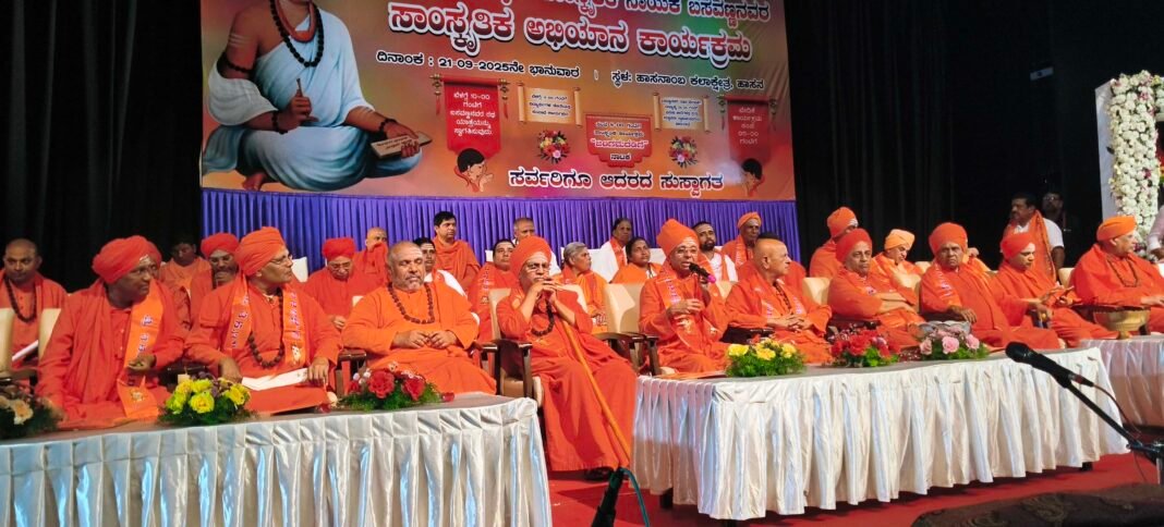 ಕಾರ್ಯಕ್ರಮದಲ್ಲಿ ಆಶೀರ್ವಚನದ ನೀಡುತ್ತಿದ್ದ ಸಾಣೇಹಳ್ಳಿಯ ಶ್ರೀ ಪಂಡಿತಾರಾಧ್ಯ ಶಿವಾಚಾರ್ಯ ಸ್ವಾಮೀಜಿ, ರಾಜ್ಯ ಸರ್ಕಾರ ಸಾಮಾಜಿಕ ಮತ್ತು ಶೈಕ್ಷಣಿಕ ಸಮೀಕ್ಷೆ ಆರಂಭಿಸಿದೆ. ಧರ್ಮದ ಕಾಲಂನಲ್ಲಿ ಲಿಂಗಾಯತ ಎಂದು ನಮೂದಿಸಬೇಕು ಎಂದ ಶ್ರೀ ಪಂಡಿತಾರಾಧ್ಯ ಶಿವಾಚಾರ್ಯ ಸ್ವಾಮೀಜಿ ಕರೆ ನೀಡಿದರು.