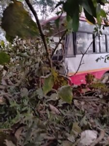 ಬೆಂಗಳೂರಿನಿಂದ ಧರ್ಮಸ್ಥಳಕ್ಕೆ ತೆರಳುತ್ತಿದ್ದ ಬಸ್ನ ಆಕ್ಸಲ್ ತುಂಡಾಗಿ ರಸ್ತೆ ಪಕ್ಕದ ಕೃಷಿ ಜಮೀನಿಗೆ ನುಗ್ಗಿದೆ. ಹೊಲದಲ್ಲಿದ್ದ ಮನೆಗೆ ಡಿಕ್ಕೆ ಹೊಡೆಯಿತು. ಅಷ್ಟಕ್ಕೂ ನಿಲ್ಲದ ಬಸ್ ಮುಂದುವರಿದು ಪಕ್ಕದಲ್ಲಿದ್ದ ಜೆಎಸ್ಎಸ್ ವಸತಿ ಶಾಲೆಯ ಕಾಂಪೌಂಡ್ ಡಿಕ್ಕಿ ಹೊಡೆದ ನಂತರ ನಿಂತಿದೆ.