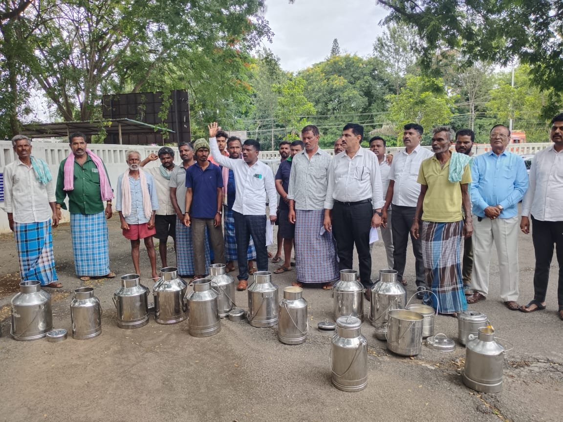 ಜಿಲ್ಲಾಧಿಕಾರಿ ಕಚೇರಿ ಎದುರು ಸೇರಿದ ಹಾಲು ಉತ್ಪಾದಕರು ತಮಗೆ ನ್ಯಾಯ ದೊರಕಿಸುವಂತೆ ಆಗ್ರಹಿಸಿದರು.