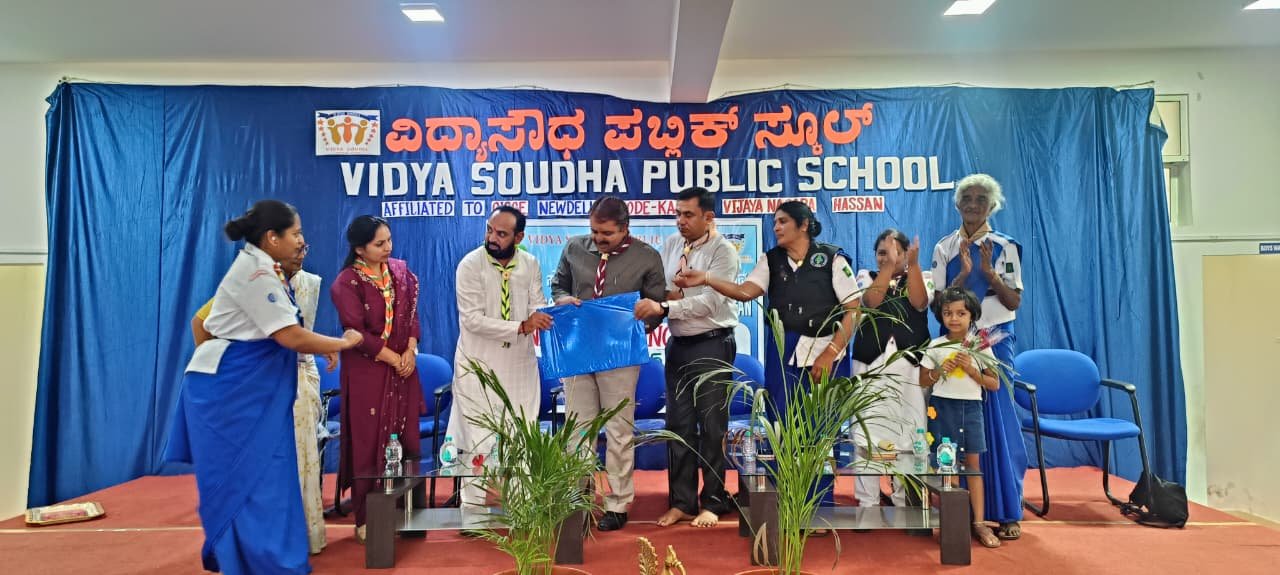 ಭಾರತ್ ಸ್ಕೌಟ್ ಮತ್ತು ಗೈಡ್ಸ್ ಸ್ಥಳೀಯ ಸಂಸ್ಥೆ ಹಾಸನ ವತಿಯಿಂದ ವಿಜಯನಗರ ಬಡಾವಣೆಯಲ್ಲಿರುವ ವಿದ್ಯಾಸೌಧ ಪಬ್ಲಿಕ್ ಶಾಲೆಯಲ್ಲಿ ಭಾರತ್ ಸ್ಕೌಟ್ ಮತ್ತು ಗೈಡ್ಸ್ ನ ನೂತನ ಘಟಕ ಉದ್ಘಾಟನಾ ಸಮಾರಂಭದ ಅಧ್ಯಕ್ಷತೆಯನ್ನು ವಹಿಸಿಕೊಂಡು ಮಾತನಾಡುತ್ತಾ ಸ್ಕೌಟ್ಸ್ ಮತ್ತು ಗೈಡ್ಸ್ ನ ಚಟುವಟಿಕೆಗಳ ಬಗ್ಗೆ ಮೆಚ್ಚುಗೆಯ ಮಾತುಗಳಾಡಿದರು.