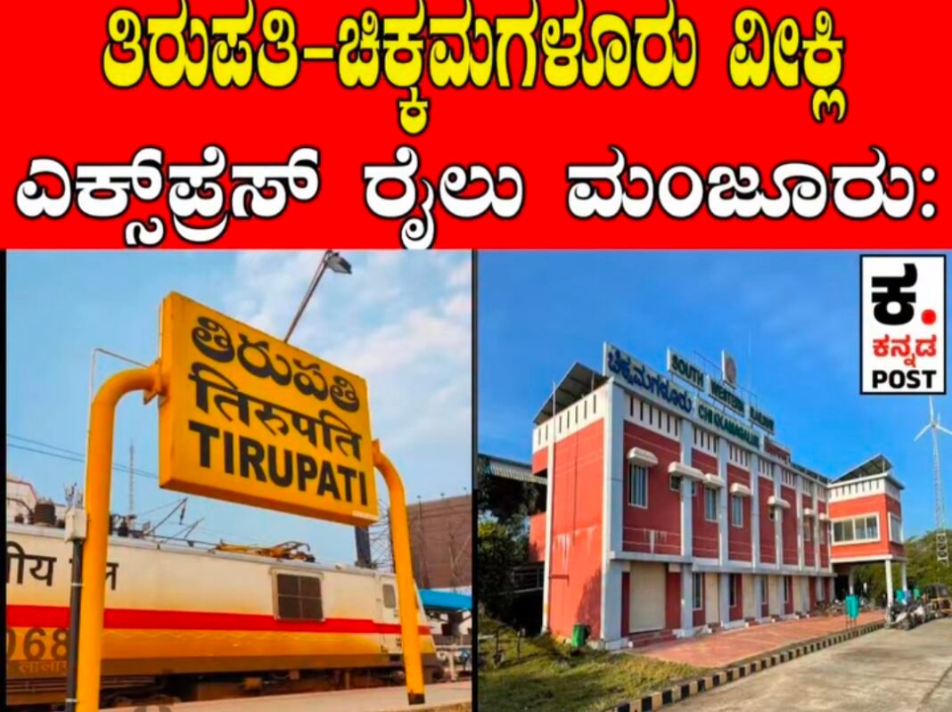 ನವದೆಹಲಿ, ಜೂನ್ 28, 2025: ರೈಲ್ವೆ ಮಂಡಳಿ ಇಂದು ತಿರುಪತಿ ಮತ್ತು ಚಿಕ್ಕಮಗಳೂರು ನಡುವೆ ಹೊಸ ವೀಕ್ಲಿ ಎಕ್ಸ್ಪ್ರೆಸ್ ರೈಲು ಸೇವೆ ಆರಂಭಕ್ಕೆ ಹಸಿರು ನಿಶಾನೆ ತೋರಿದೆ.