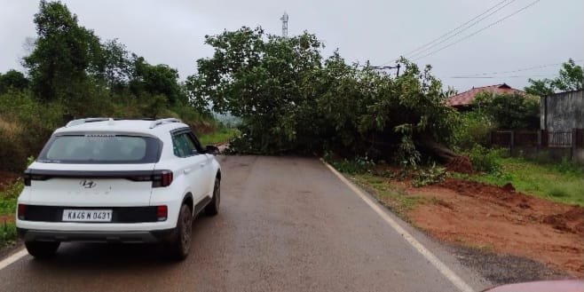ರಸ್ತೆಯ ಮೇಲೆ ಮರ ಬಿದ್ದು ವಾಹನ ಸಂಚಾರಕ್ಕೆ ಅಡ್ಡಿ