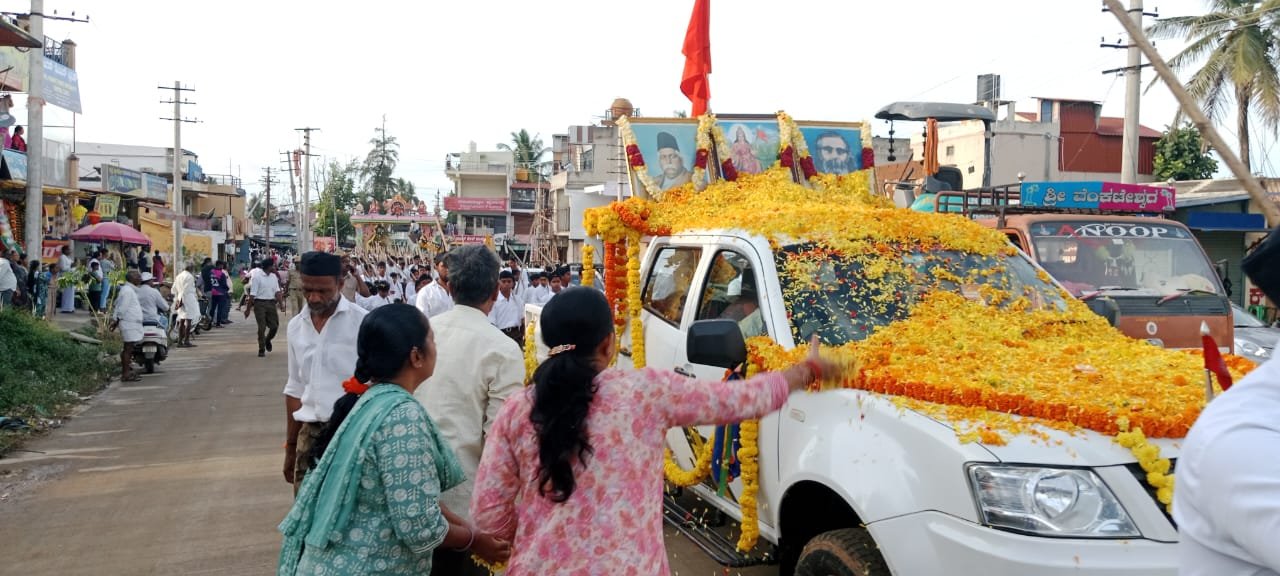 ಪಥ ಸಂಚಲನದಲ್ಲಿ ಸಾಗಿದ ಭಾರತ ಮಾತೆ, ಹಾಗೂ ಆರ್.ಎಸ್.ಎಸ್ ಸಂಸ್ಥಾಪಕ ಕೇಶವ ಬಲಿರಾಂ ಹೆಡಗೆವಾರ್ ಚಿತ್ರ ಹೊತ್ತ ವಾಹನಕ್ಕೆ ಅಂಗಡಿ ಹಾಗೂ ಮನೆಗಳ ಮುಂದೆ ಪುಷ್ಪ ವೃಷ್ಟಿ ನೆರವೇರಿಸಿದರು. ಹೊಯ್ಸಳ ವೃತ್ತ, ಬಸವೇಶ್ವರ ವೃತ್ತ ಹಾಗೂ ಅಂಬೇಡ್ಕರ್ ವೃತ್ತದಲ್ಲಿ ಜೆಸಿಬಿಯಿಂದ ಪುಷ್ಪ ವೃಷ್ಟಿ ನೆರವೇರಿಸಲಾಯಿತು.