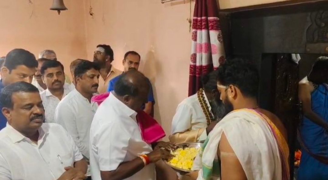 ಬಳಿಕ ತಮ್ಮ ಹುಟ್ಟೂರು ಹರದನಹಳ್ಳಿಯಲ್ಲಿರುವ ಕುಲದೈವ ದೇವೇಶ್ವರ ದೇವಾಲಯಕ್ಕೆ ತೆರಳಿ ಪೂಜೆ ಸಲ್ಲಿಸಿದರು. ತಮಿಳುನಾಡಿನ ತಿರುಚನಪಲ್ಲಿಯಿಂದ ಎಚ್.ಡಿ.ಕೆ. ಅವರೊಂದಿಗೆ ‘ಸಿದ್ಧ’ ಮಸಿ ಸಿವ ಚಿತ್ತಂ ಎಂಬುವರು ಮೂರು ದೇವಾಲಯಗಳಿಗೂ ಭೇಟಿ ನೀಡಿದರು.