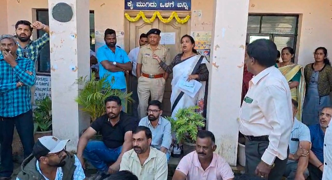 ಗ್ರಾಮ ಪಂಚಾಯಿತಿ ಸದಸ್ಯರು, ಅಭಿವೃದ್ಧಿ ಅಧಿಕಾರಿ ವಿರುದ್ಧ ಪ್ರತಿಭಟನಾಕಾರರು ಘೋಷಣೆ ಕೂಗಿದರು.