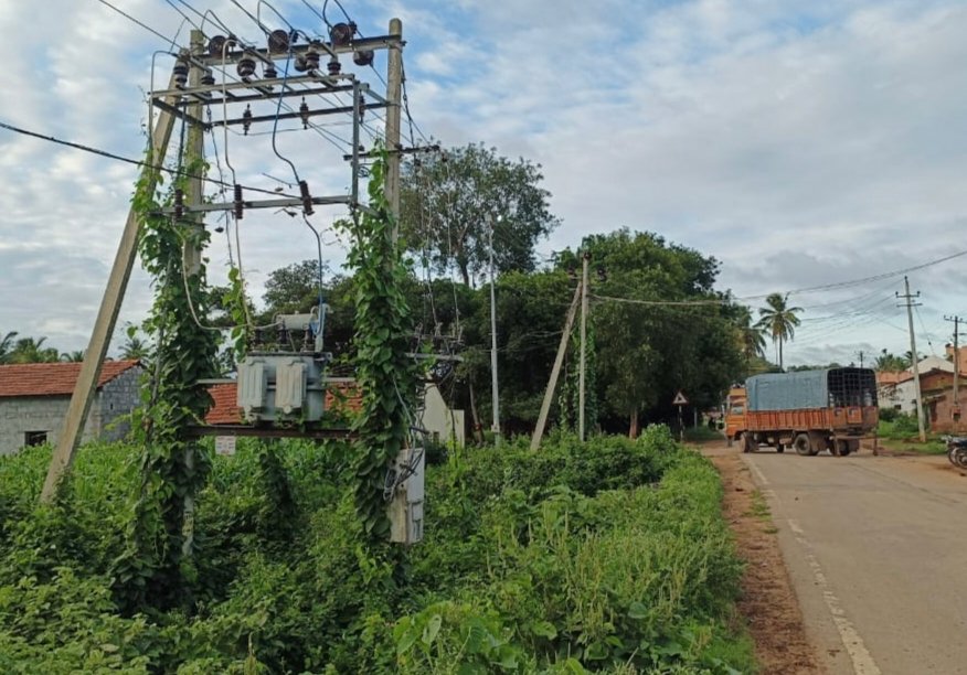 ರಸ್ತೆ ಬದಿಯಲ್ಲಿ ಅಳವಡಿಸಿರುವ ವಿದ್ಯುತ್ ಪರಿವರ್ತಕ, ತಂತಿ ಹಾಗೂ ಕಂಬಗಳಿಗೆ ಅಂಬು ಹಬ್ಬಿದ್ದು ಸೆಸ್ಕ್ ಅಧಿಕಾರಿಗಳು ಹಾಗೂ ಸಿಬ್ಬಂದಿ ವರ್ಗದ ನಿರ್ಲಕ್ಷ್ಯ ಹಾಗೂ ನಿರ್ವಹಣೆಯ ಕೊರತೆಗೆ ಸಾಕ್ಷಿಯಾಗಿದೆ.