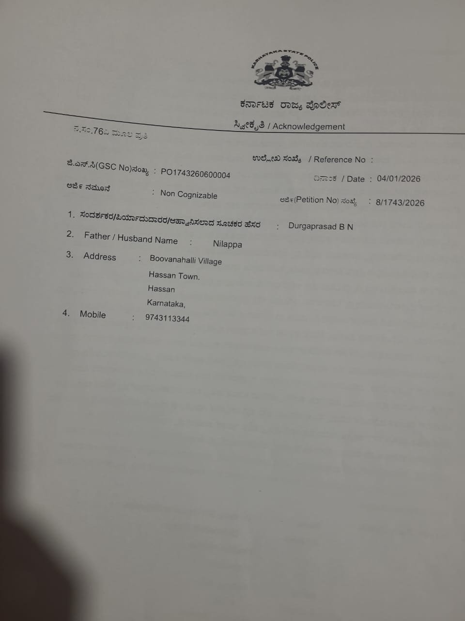 ಪುಷ್ಪಾ ಅವರು ಬೆಂಗಳೂರಿನಲ್ಲಿ ಇದ್ದು, ಅವರ ಸೂಚನೆಯಂತೆ ದೂರು ದಾಖಲಿಸಲಾಗಿದೆ ಎಂದು ದೂರಿನಲ್ಲಿ ಉಲ್ಲೇಖಿಸಲಾಗಿದೆ. ದುರ್ಗಾಪ್ರಸಾದ್ ಅವರು ಪುಷ್ಪಾ ಅವರ ಮನೆಗೆಲಸದ ಸಿಬ್ಬಂದಿಯಾಗಿದ್ದಾರೆ.